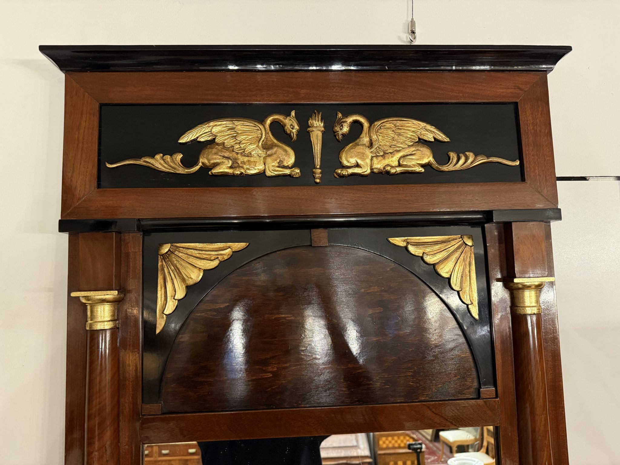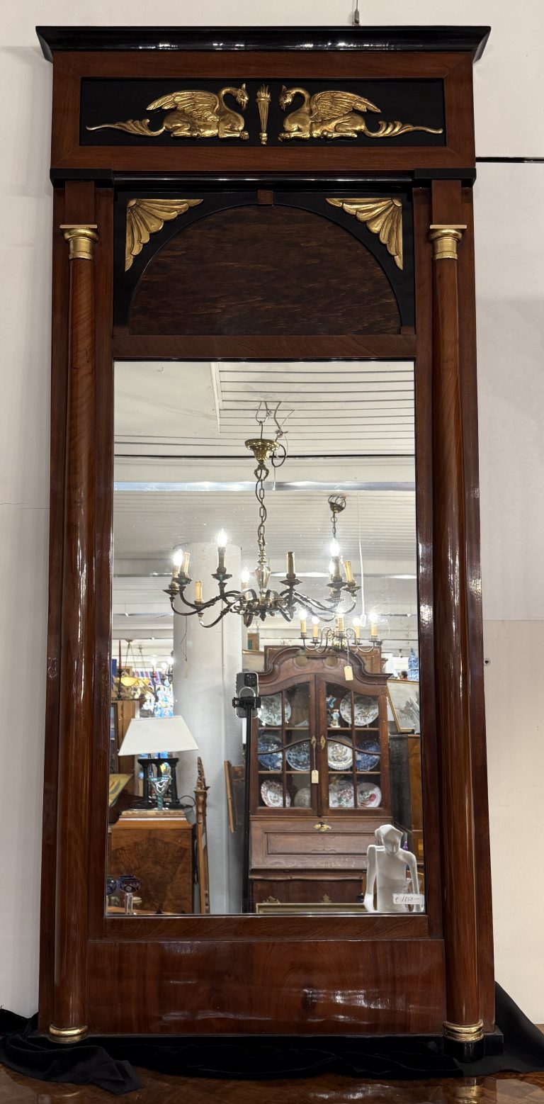 Empire Spiegel Spiegel mit empirischer Symbolik um 1800Material: Mahagoni mit vergoldeten Messingaplikationen Maße: 168 x 71 x 7 cm Anmerkung: Nur Selbstabholung in Berlin-Charlottenburg, kein Versand. Ladenverkauf geht grundsätzlich vor. Preis: 1850,00 € Jetzt unverbindlich anfragen Ihr Name (Pflichtfeld) Ihre E-Mail-Adresse (Pflichtfeld) Ihre Telefonnummer Betreff Ihre Nachricht Ich habe die Datenschutzerklärung zur Kenntnis genommen. Ich stimme zu, dass meine Angaben zur Kontaktaufnahme und für Rückfragen dauerhaft gespeichert werden. Bitte gib eine Antwort in Ziffern ein: 12 + 20 =