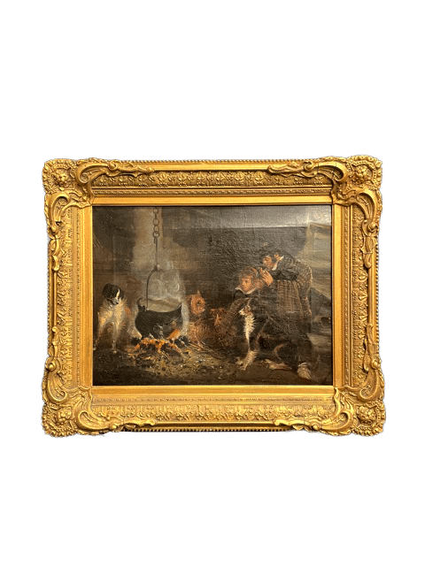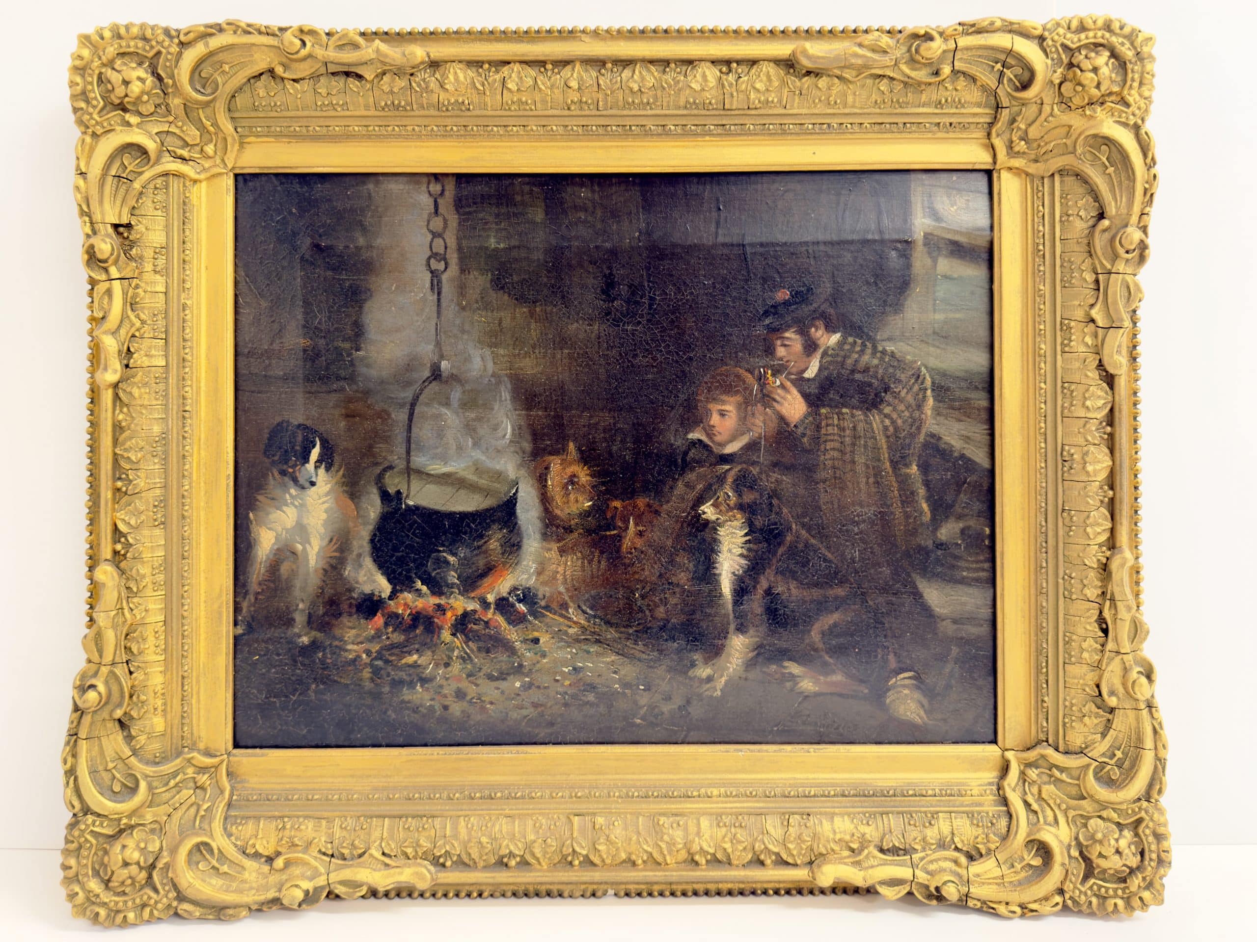 Edwin Henry Landseer (1802-1873) „Küchen-Interieur mit Kind und Hunden“