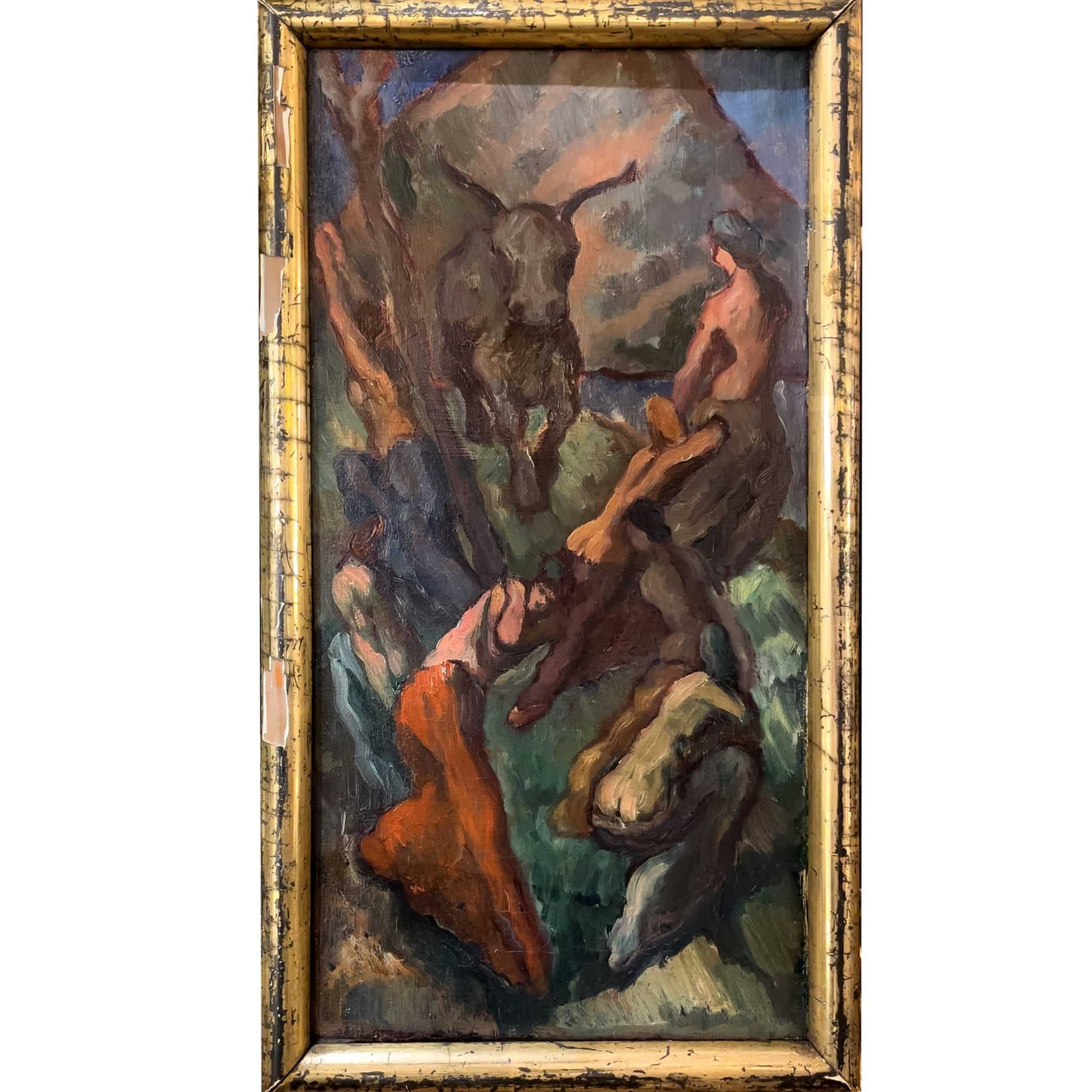 Künstler: Werner Heuser (1880 – 1964); rückseitig signiert und datiert „Heuser 1912“. Heuser war seit 1926 Professor an der Kunstakademie Düsseldorf und wurde 1937 als „entarteter Künstler“ seines Amtes enthoben.