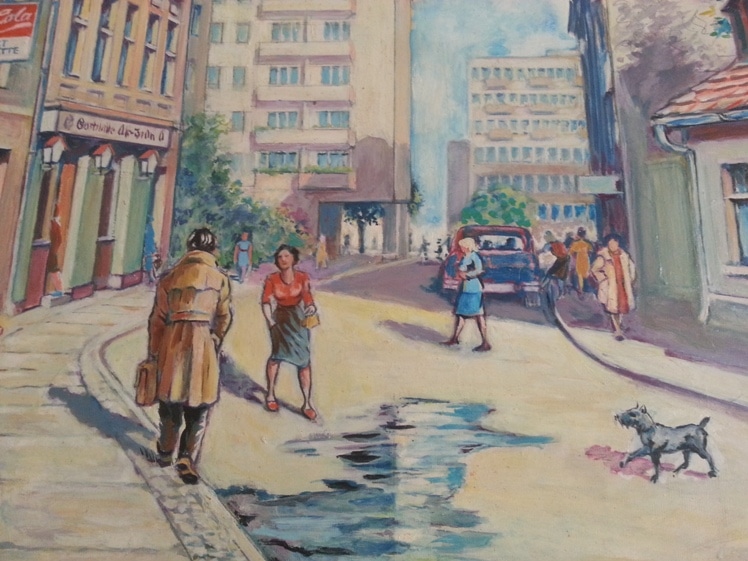 Es handelt sich um eines der seltenen Ölgemälde des Berliner Künstlers, der sich ansonsten vor allem mit Illustrationen und Plakatkunst auseinandersetzte.