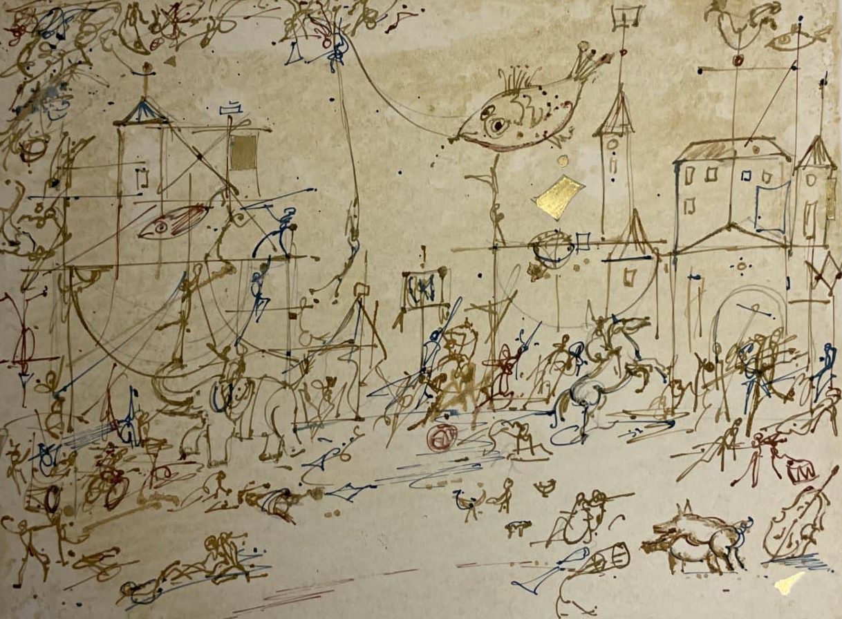 Material: Monotypie/Papier, Blattgold, Tusche