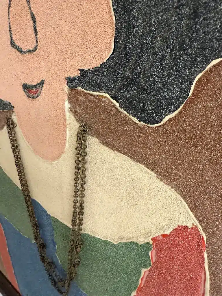 Technik: Öl mit Sand vermischt auf Spanplatte