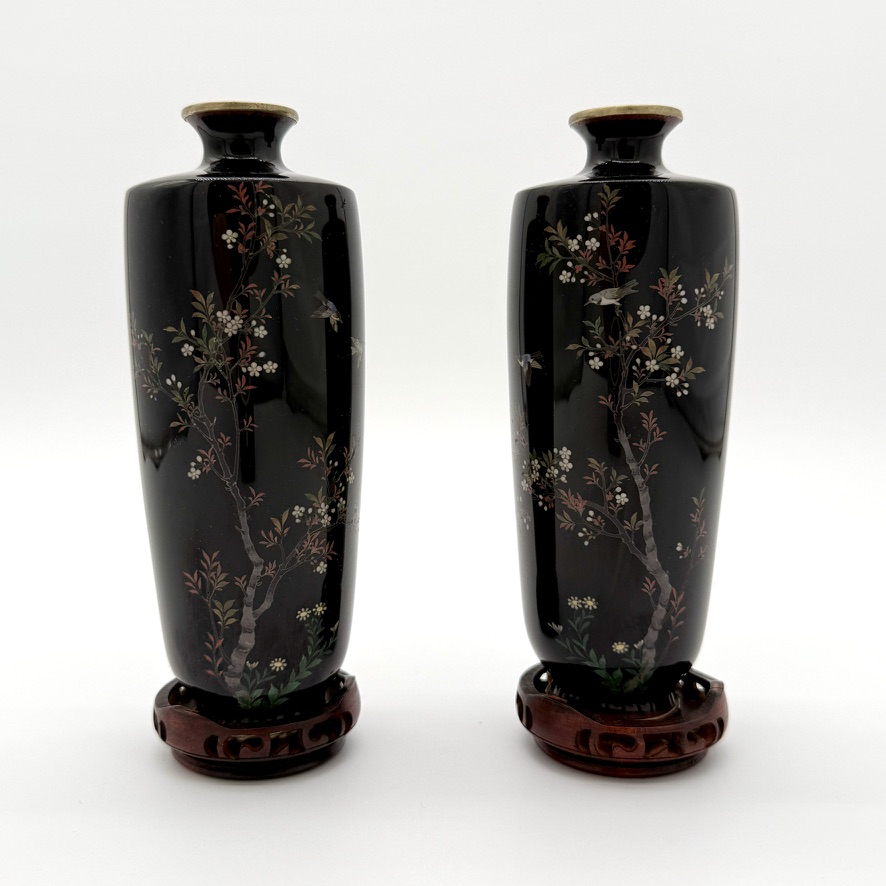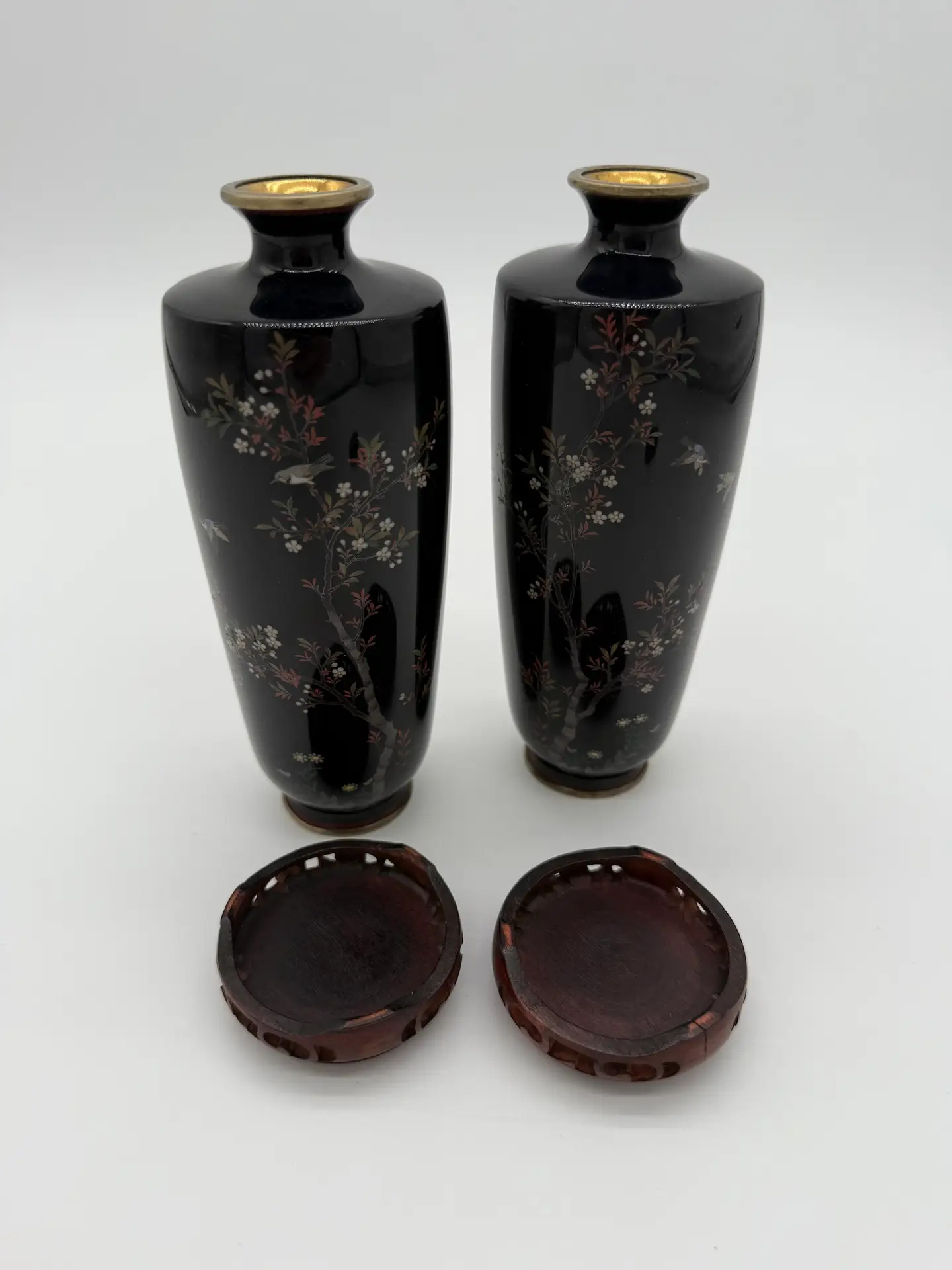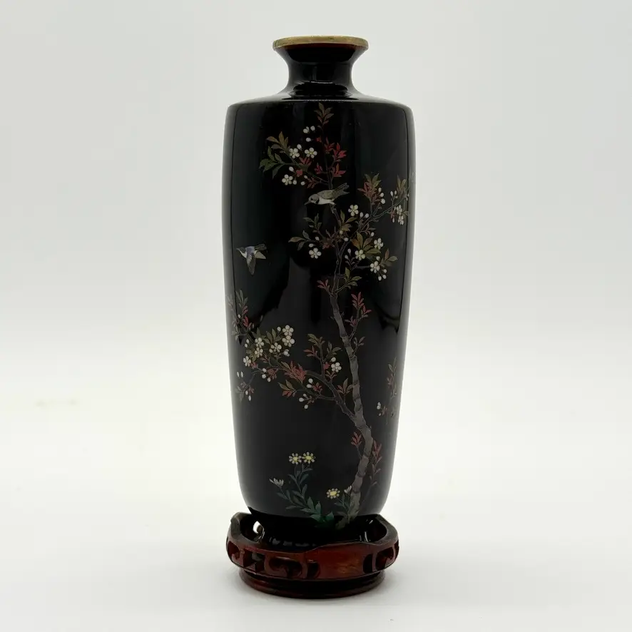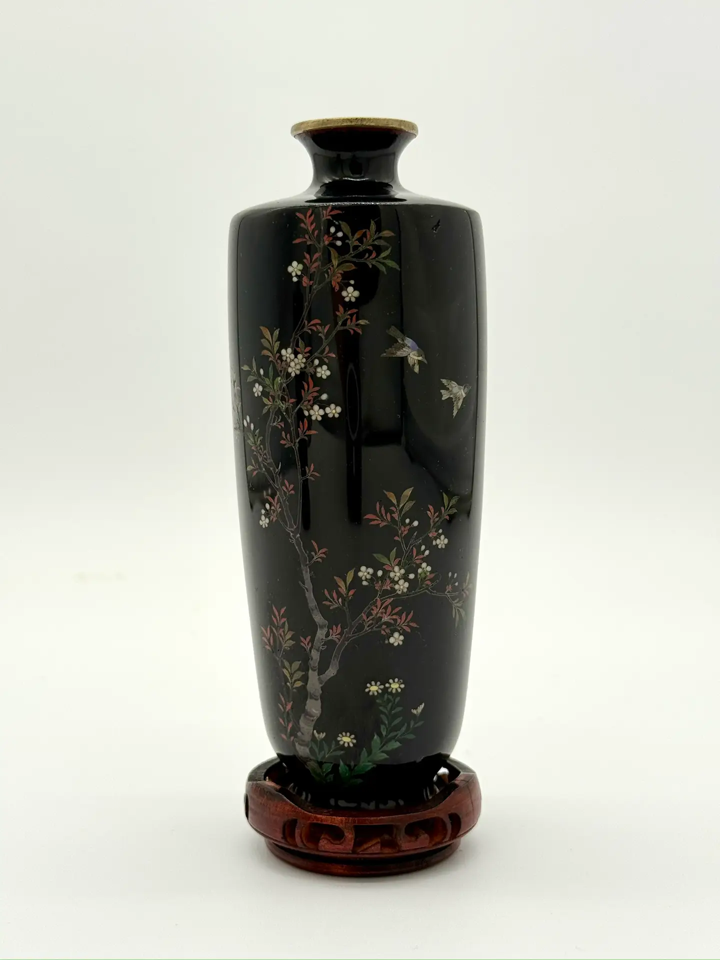 Chinesische Cloisonné Vase mit originalem Untersetzer