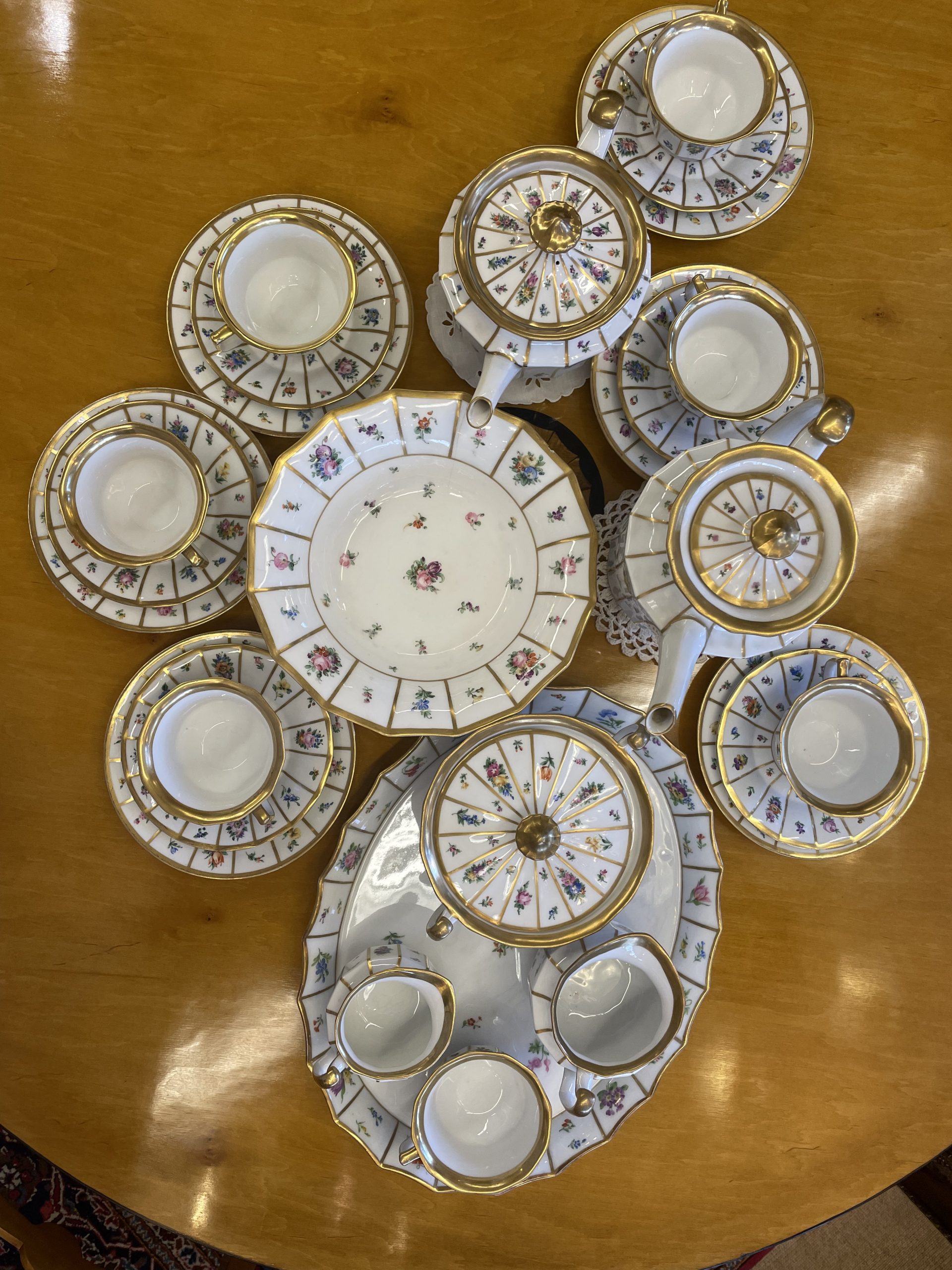 Material: Porzellan, partielle Vergoldung. Nur die Schale hat einen kleinen Defekt.