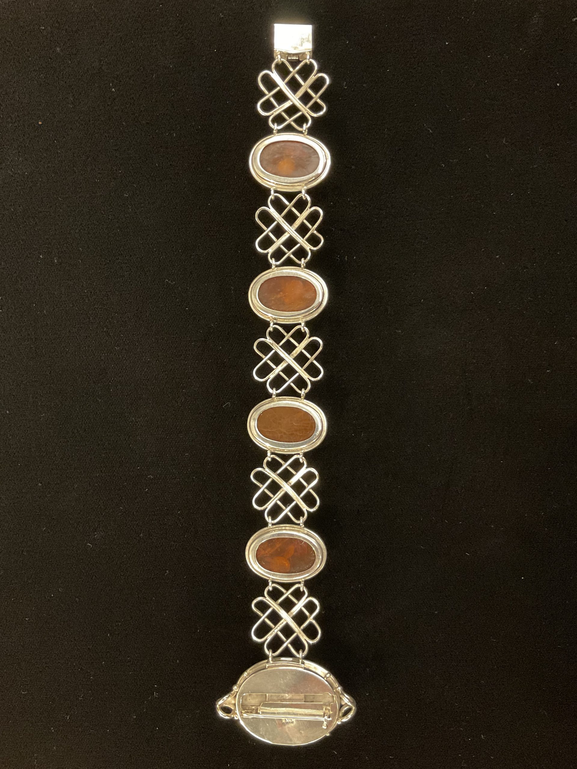 Das große Schmuckelement des Armbands ist abnehmbar und lässt sich auch als Brosche oder Kettenanhänger tragen