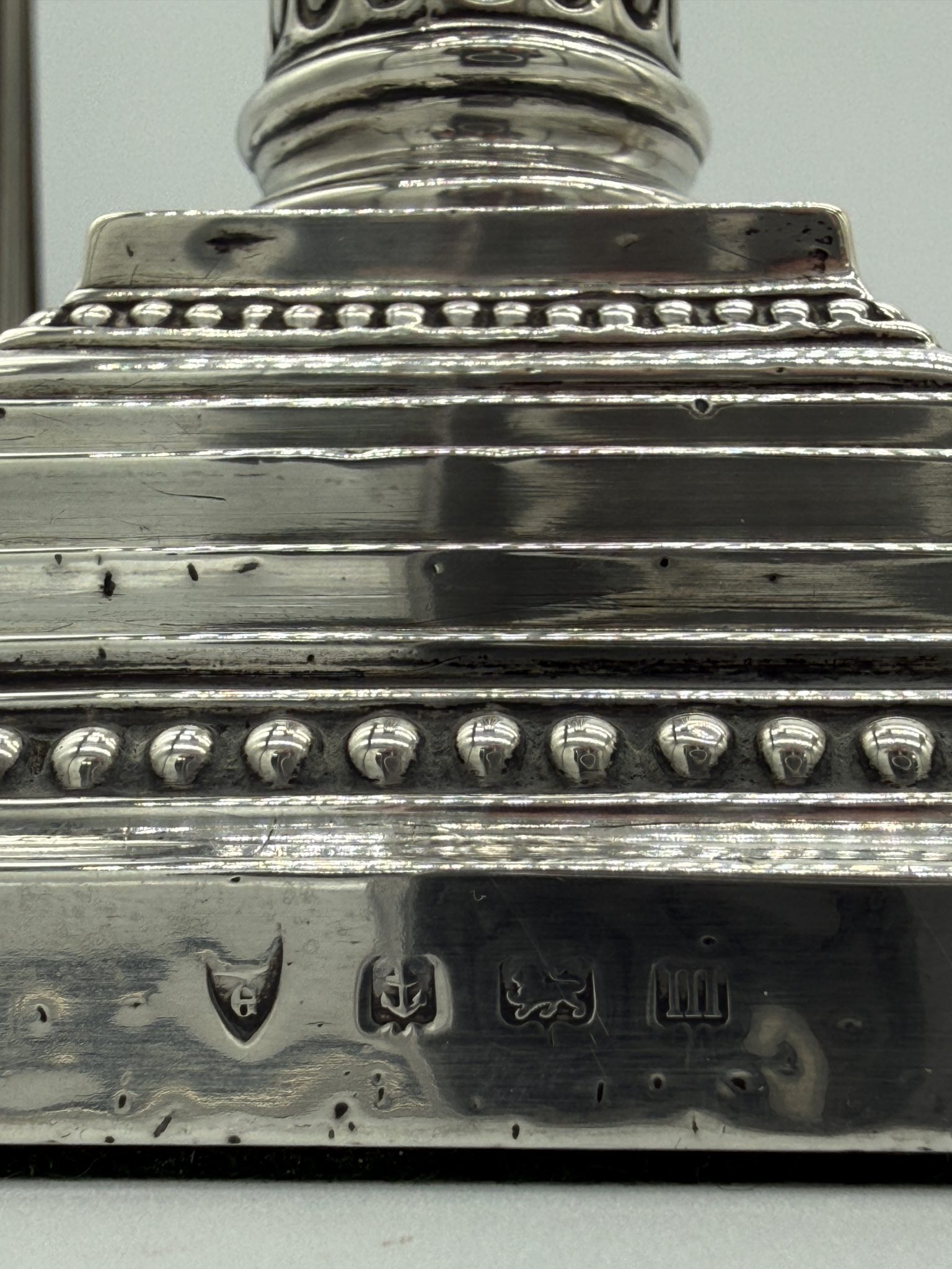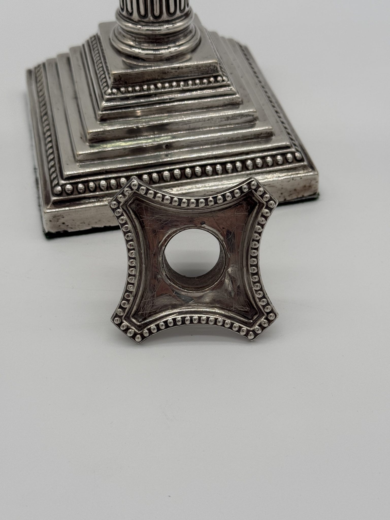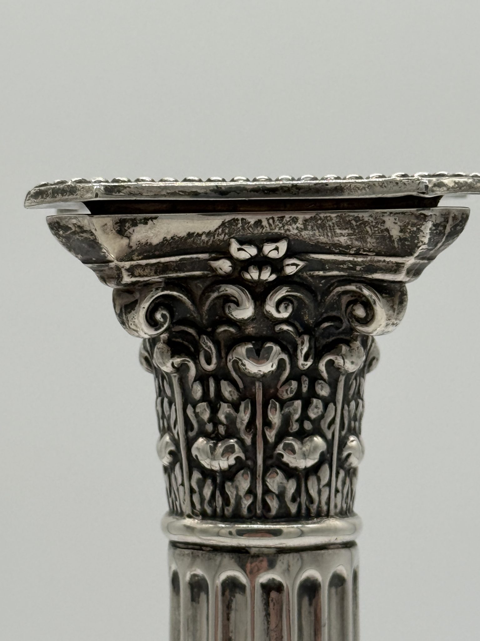 Kerzenhalter - korintische Säulen Material: 925er Sterling Silber – Birmingham – siehe Punzen Bild 2/3 Maße: 30 x 13 x 13 cm Zustand: Sehr gutabnehmbare Wachs und Tropfen Fänger Preis: 1750,-€ Jetzt unverbindlich anfragen Ihr Name (Pflichtfeld) Ihre E-Mail-Adresse (Pflichtfeld) Ihre Telefonnummer Betreff Ihre Nachricht Ich habe die Datenschutzerklärung zur Kenntnis genommen. Ich stimme zu, dass meine Angaben zur Kontaktaufnahme und für Rückfragen dauerhaft gespeichert werden. Bitte gib eine Antwort in Ziffern ein: 18 − 14 =