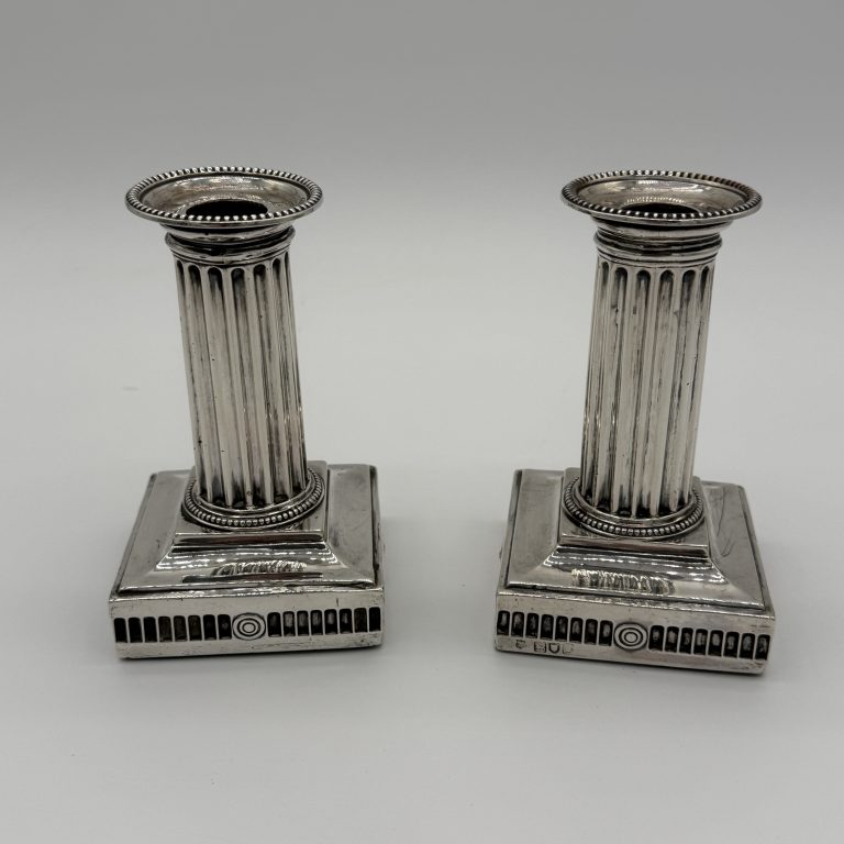 Paar Kerzenhalter Material: Sterling Silber – London – 1897 Maße: 14 x 4 x 4 cm Zustand: Sehr gut Preis: 750,00€ Jetzt unverbindlich anfragen Ihr Name (Pflichtfeld) Ihre E-Mail-Adresse (Pflichtfeld) Ihre Telefonnummer Betreff Ihre Nachricht Ich habe die Datenschutzerklärung zur Kenntnis genommen. Ich stimme zu, dass meine Angaben zur Kontaktaufnahme und für Rückfragen dauerhaft gespeichert werden. Bitte gib eine Antwort in Ziffern ein: 18 − 15 =